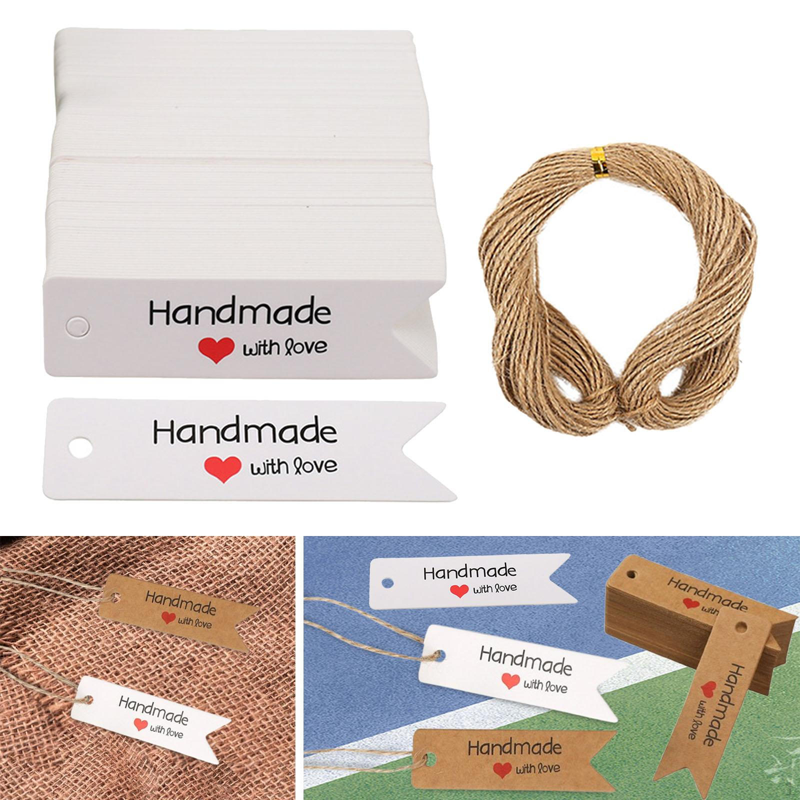 100 штук подарочных бирок для самостоятельного изготовления поделок в стиле ретро из крафт-бумаги, небольшие этикетки на день рождения белый