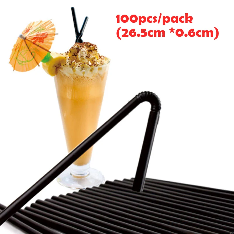 100 шт одноразовые пластиковые соломинки гнущиеся молочный коктейль молочный чай Длинная Солома черный DIY партия День рождения посуда поста...