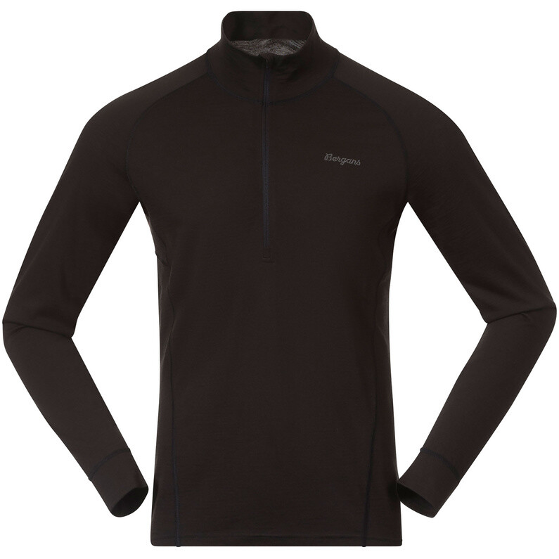 Мужская внутренняя часть: куртка из шерсти мериноса с длинным рукавом и молнией до половины Bergans, черный