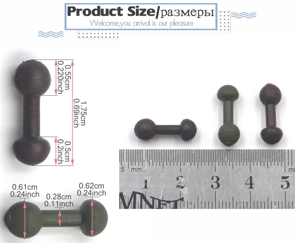 100 шт. Мягкие Резиновые Шарики MNFT/бусины для вертлюга Аксессуары для рыбалки в форме гантелей рыболовные терминалы для карпа коричневые и зе...