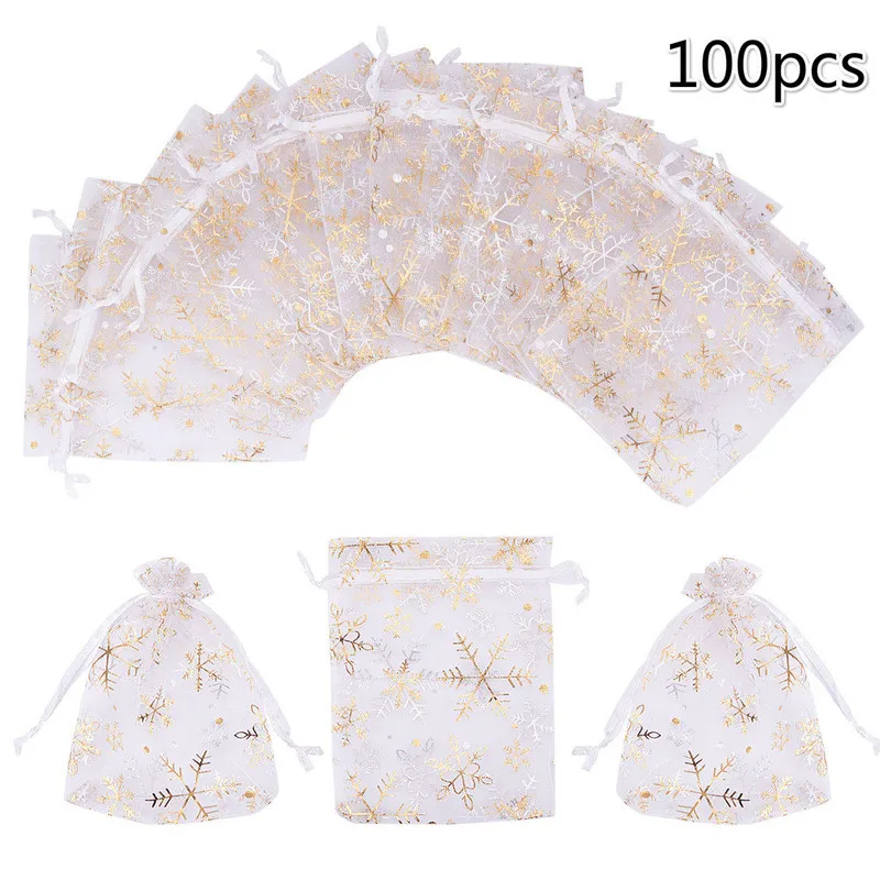 100 шт. белая марля на шнурке с принтом, держатель для упаковки, цветная Золотая пряжа, конфеты, рождественские подарки, сумки