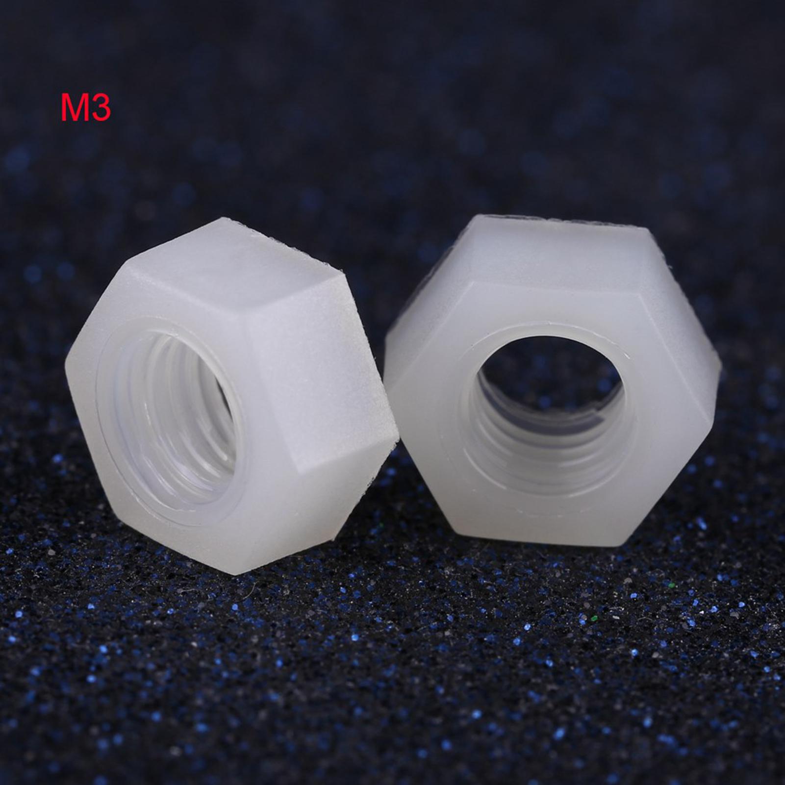 100 шт. нейлоновая шестигранная гайка M2M8, метрическая резьба, шестигранный крепеж, профессиональная фурнитура, белая(M3)