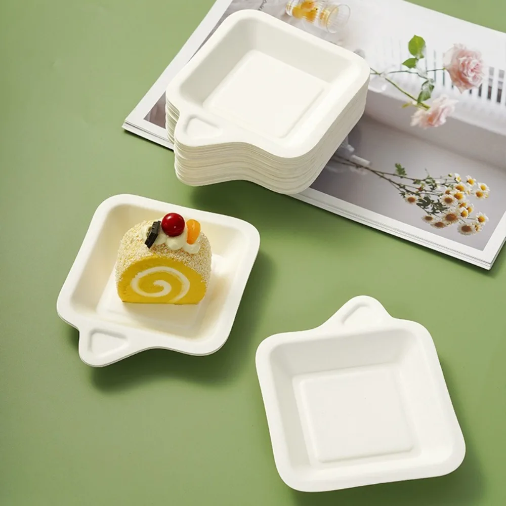 100 шт. одноразовая бумажная тарелка из биоразлаганого материала, экологически чистая легкая утолщенная бумажная тарелка, нескользящая квадратная тарелка для торта