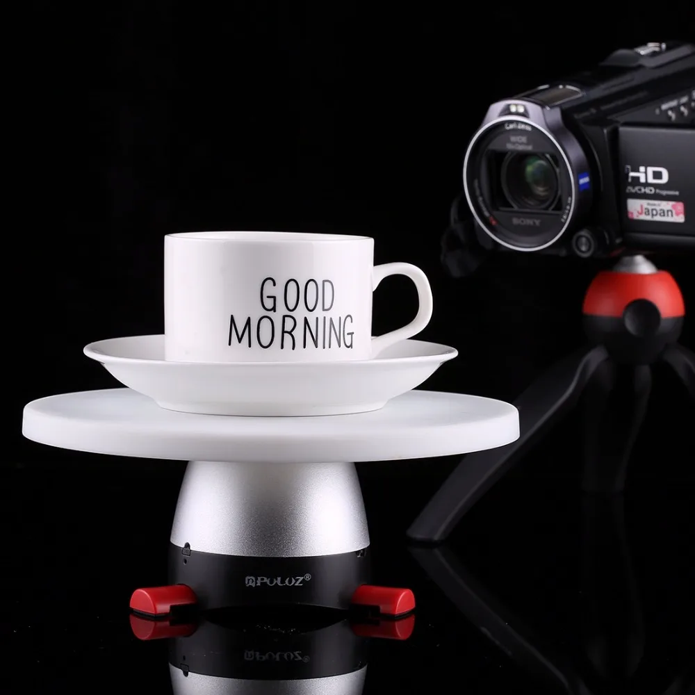 PULUZ Electronic 360 Degree Rotation Panoramic Tripod Head (Red)+Round Tray with Control Remoter Fit for Shooting small products