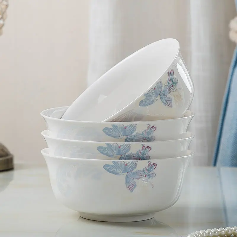 Ceramic Bowl Jingdezhen Real Bone China Household Dinner Bowl Rice Bowl Ceramic Bowl Plate Thickened Anti-scalding Microwave