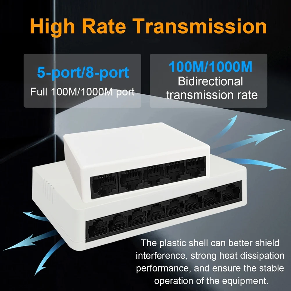 1000M Unmanaged Network Ethernet Switch Fast RJ45 LAN Switching Hub Ethernet Smart Desktop Switch 8 Port EU Plug Easy To Use-ABI