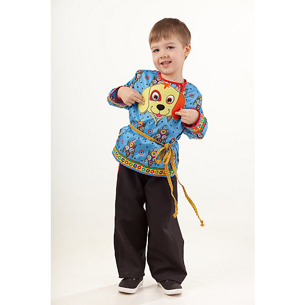 100% полиэстер Карнавальный костюм "Собака Филя" выполнен в стиле городецкой росписи. Дополняет образ маска в виде мордочки собаки.
