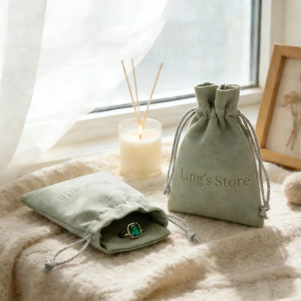 100pcs Custom Microfiber Drawstring Gift Bag Jewelry Packaging Display Personalized Small Ring Earrings Watch Storage Case Pouch