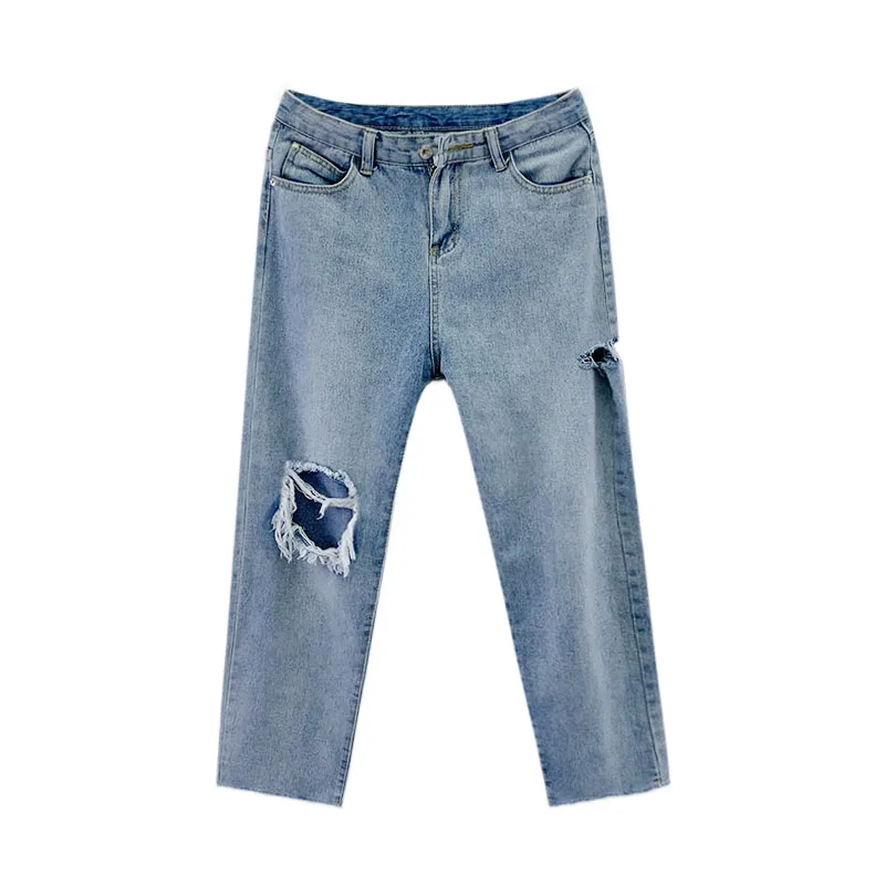 ies high waist knee hole jeans woman denim pants overlength ripped jeans high street zipper trousers 210412, Blue