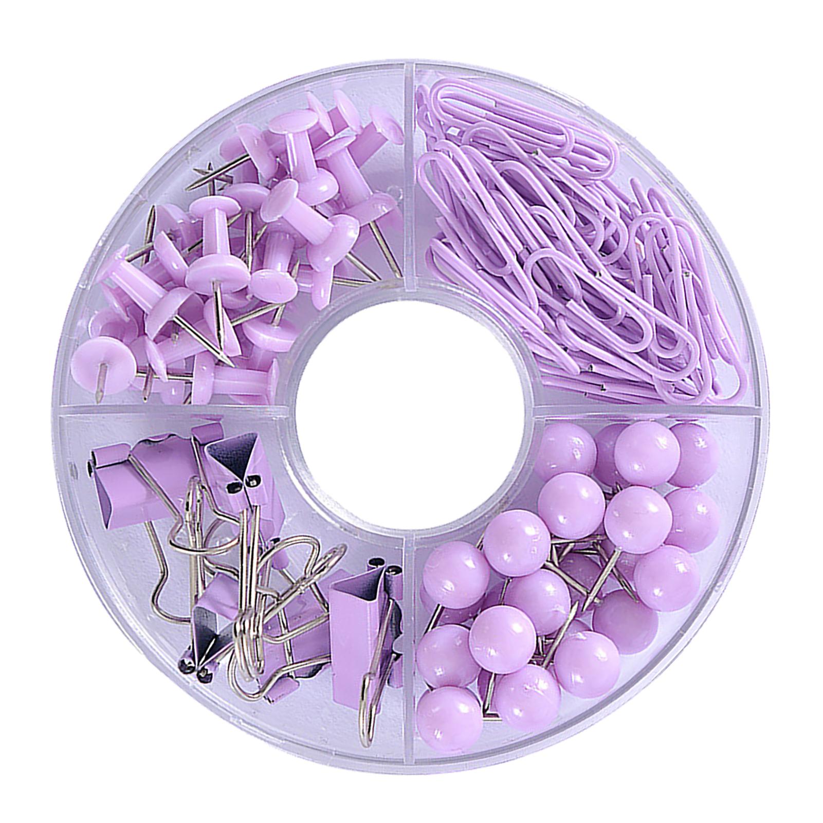105 шт. Кнопки, Зажимы для бумаги, Скрепки для бумаги, Наборы кнопок для карт, Многофункциональные, Прочные, Набор офисных зажимов фиолетовый