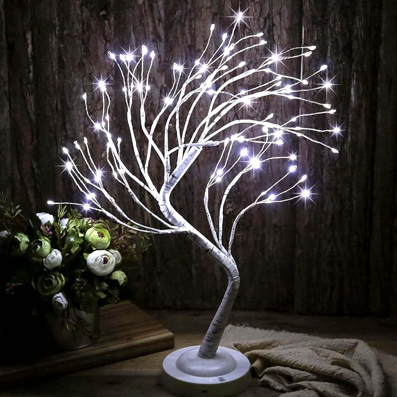 108 светодиодная Береза, Настольная лампа-бонсай, Сказочная лампа-дерево, 8 режимов освещения и таймер, Питание от батареек/USB, Вечеринка Свадьба Праздник Фестиваль Рождество белый