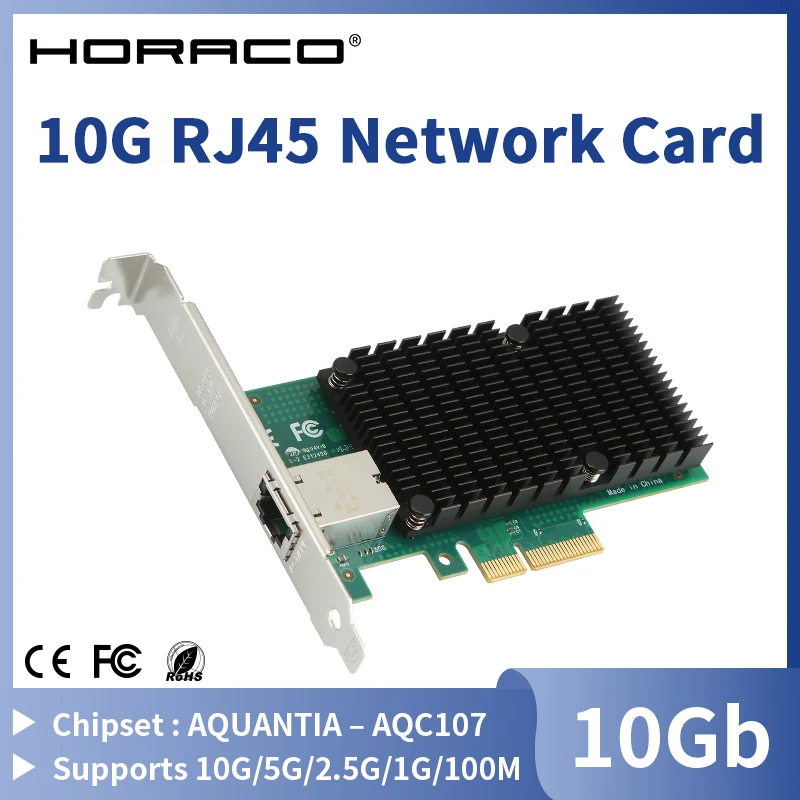 10G PCIE To RJ45 Network Card Marvell AQC107 PCIE X4 Network Adapter Ethernet 10000Mbps PCI Express LAN Adapter