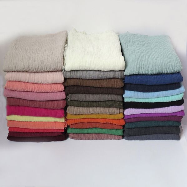 factory sale!!! size: 180cm * 90cm colors: 35 different colors to choose material: cotton and poly. our bubble scarves are higher quality than others (texture,touchness,elasticity), without any defect of white spots lines. please specify colorsquantities in your order, like #1-2pcs, #3-3pcs... if not specified, we will send the most popular and assorted colors.