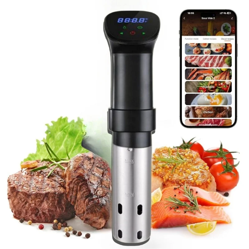 1100W Advanced Sous Vide Precision Cooker Stainless Immersion Circulator Machine with WiFi APP & Recipes LED Touch Controls