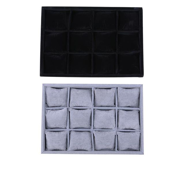 12 сетки flocking часы дело ювелирные изделия кольца браслеты дисплей ящик для хранения, Black;blue