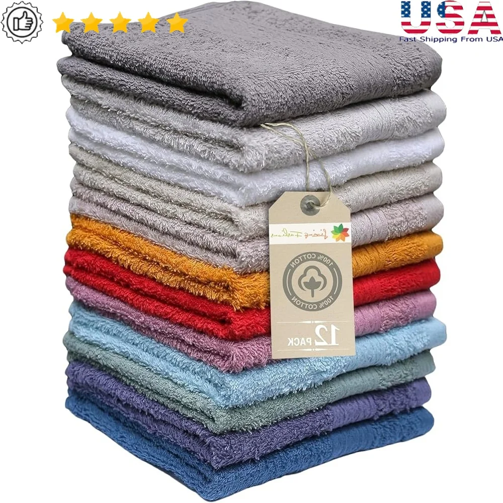 12 упаковок мягких хлопковых мочалок, дополнительный впитывающий набор полотенец, можно стирать в машине, разноцветные полотенца для лица и тела, ванная комната, домашнее использование