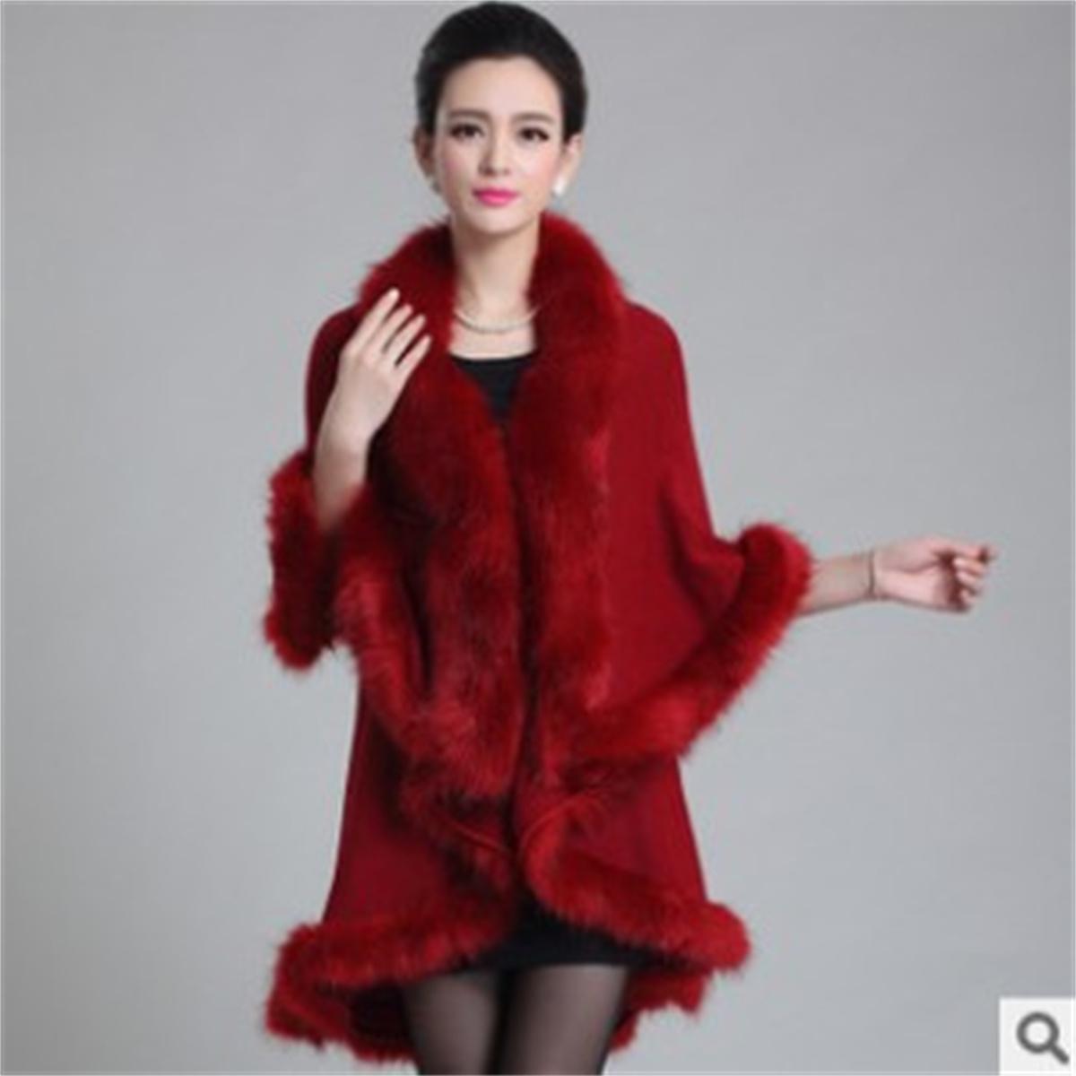 12 цветов, большой маятник, женская уличная одежда, двухслойный свободный плащ с воротником из искусственного лисьего меха, кашемировое зимнее теплое пончо с рукавами «летучая мышь» One Size