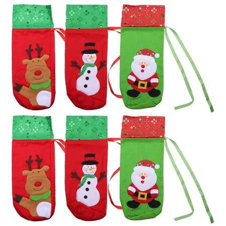 TOYMYTOY 6Pcs Xmas Themed Wine Bags Wear-resistant Wine Storage Bags Xmas Party Wine Bottle Covers