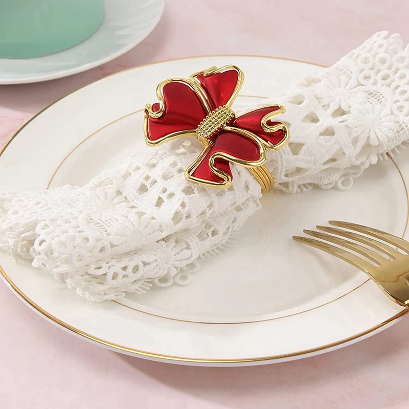 12 штук кольца для салфеток с красным бантом, кольца-держатели для салфеток с бантом-бабочкой ручной работы, элегантные украшения для стола