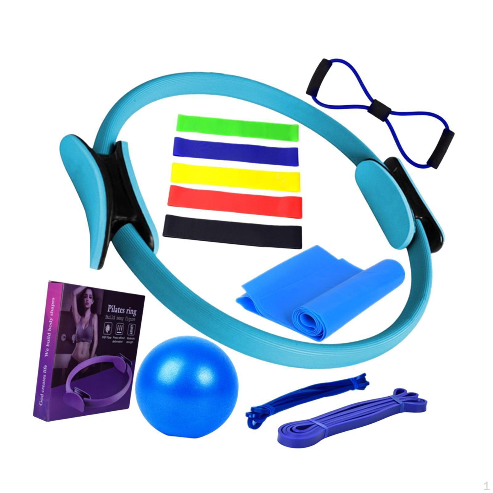 12 штук комплект кілець та м ячів для пілатесу, еспандери, портативний багатоцільовий ремінь для розтяжки синій