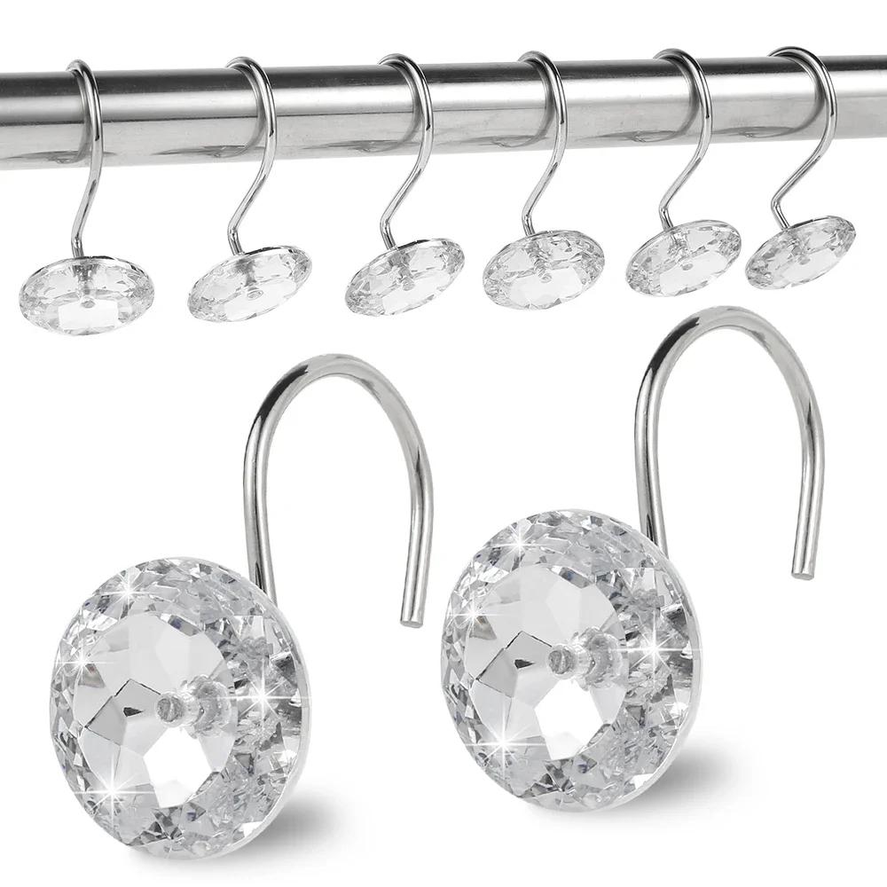 12 шт крючков для занавесок для душа нержавеющие акриловые кристаллы круглые бриллиантовые декоративные кольца для карнизов для штор душевые карнизы НОВЫЕ чистый
