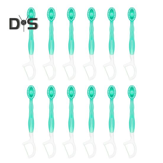 12 шт одноразовая зубная щетка с зубной пастой, щетка для чистки языка, портативная дорожная зубная щетка для взрослых, предварительно пропитанная зубная нить, уход за полостью рта Green Tea