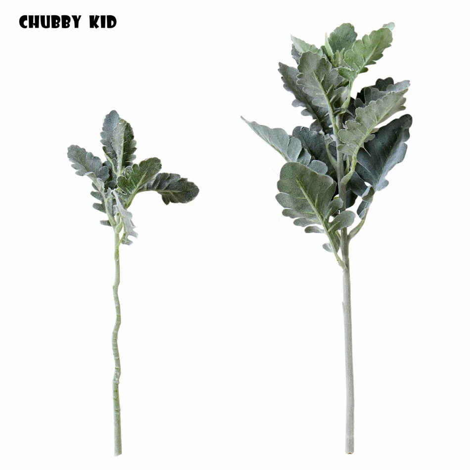 (12 шт.) Высокое моделирование, искусственные растения стекаются senecio цинерария Diy пыльный мельник листья поддельные Василек цинерария оптовая продажа