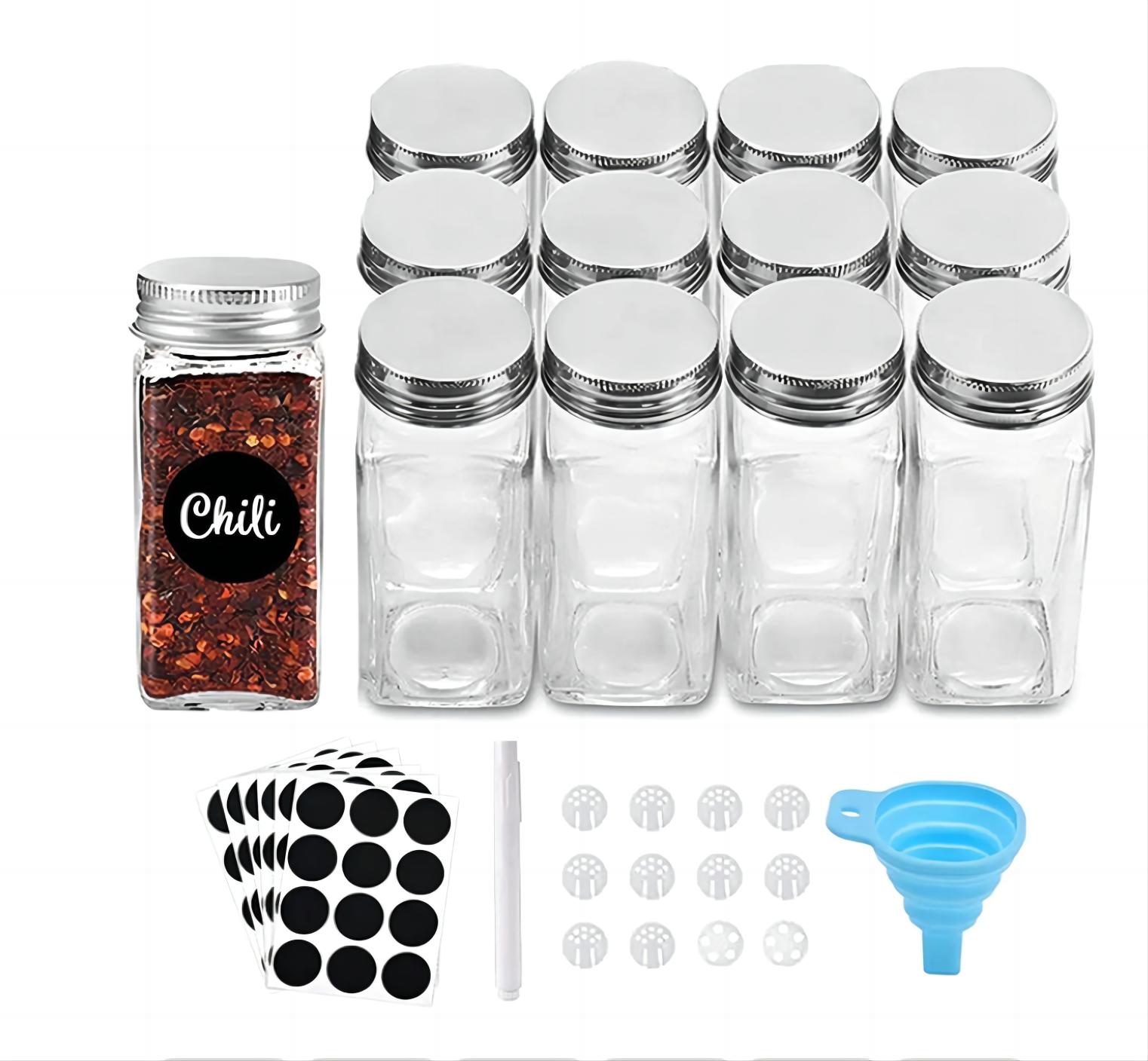12 шт. Деревянные крышки, стеклянные банки для специй, квадратные прозрачные бутылки для хранения приправ, кухонная соль, специи, молотый перец, инструменты для герметизации