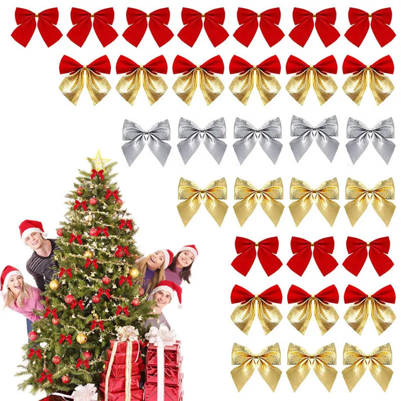 12 шт. Золотой Серебряный бант на день рождения, подарок, Декор, 5 см, рождественские банты, банты, украшения для рождественской елки, домашние ...