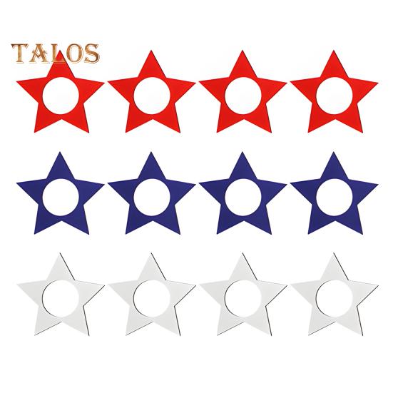 12 шт. Патриотические кольца для салфеток Красно-бело-синие деревянные кольца для салфеток в виде звезд Многоразовый держатель для ткани для коктейлей на 4 июля День памяти для свадебной вечеринки 12pcs
