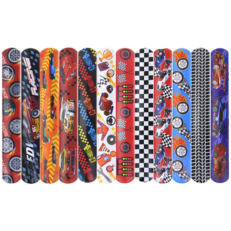 12 шт. браслеты-хлопушки в виде гоночных машин, подарок для гостя, счастливые дети, мальчики, колеса, тема гоночных машин, украшение на день рождения, клетчатый