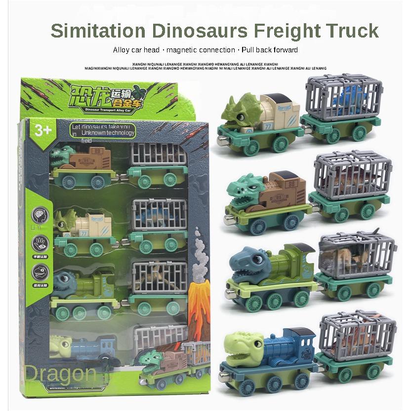 12 шт. игрушечный грузовик-динозавр, мини-динозавровый транспортный автомобиль-перевозчик, поезда, набор откатных грузовиков-монстров для мальчиков и девочек, малышей, подарок на день рождения, Рождество Size:15*4.5*3cm,8Pcs зелёный