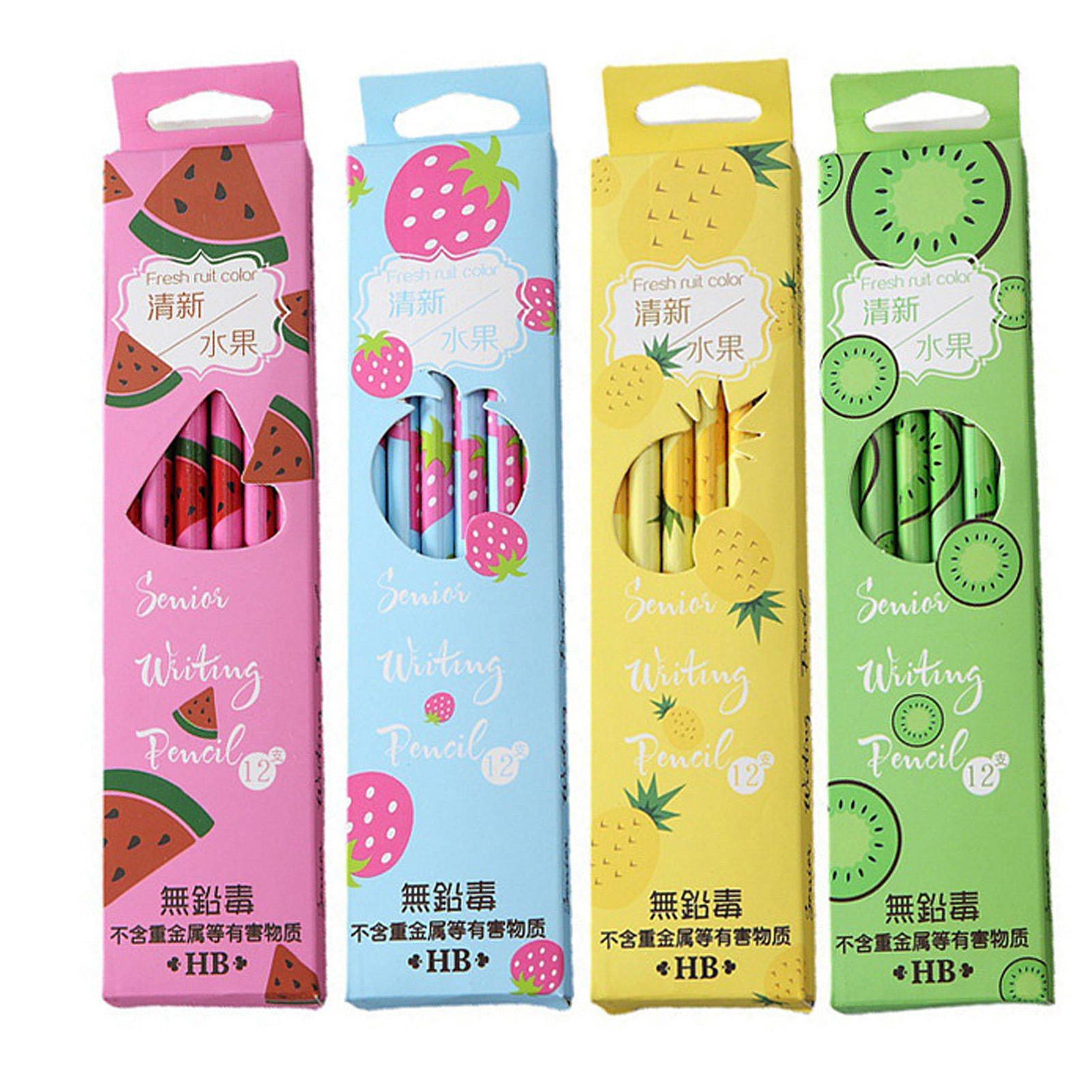 12 шт. карандашей HB из прессованного дерева с фруктовым узором, удобная ручка, круглый стержень, ластик, перс Green
