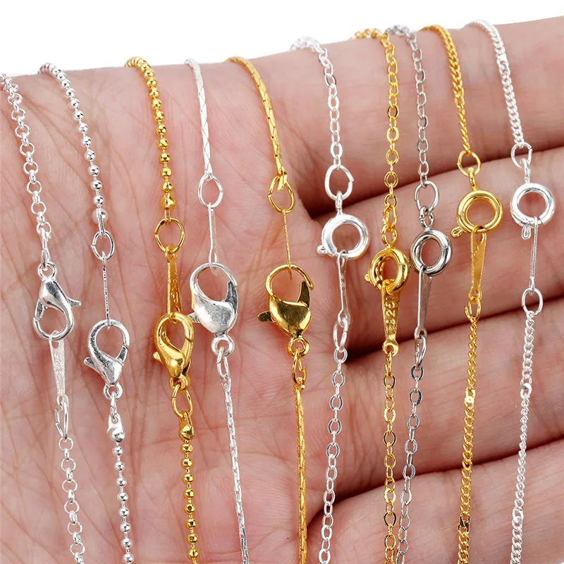 12 шт. медные цепочки для ожерелья, объемная партия, диаметр 1 мм, золотистые и Серебристые змеиные шарики, цепочки для изготовления ювелирных...