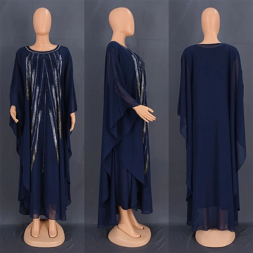 Роскошное Африканское платье с кристаллами для женщин, мусульманская абайя, женская шифоновая одежда, вечерние длинные платья, мусульманск...