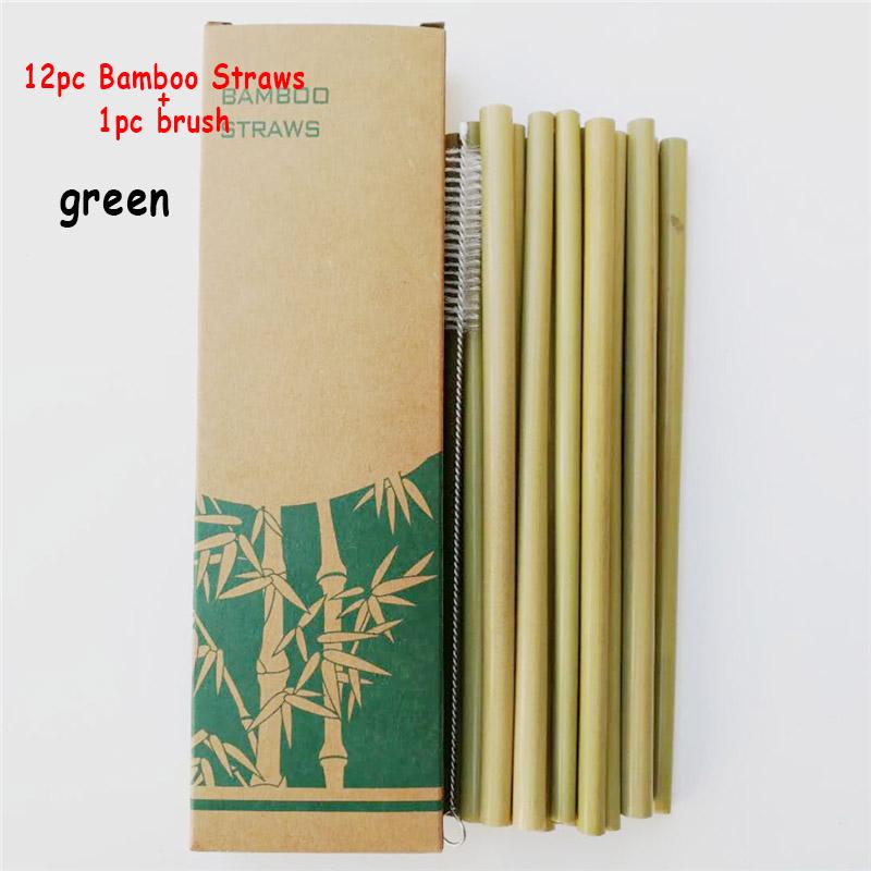 12 шт. соломинок для питья, зеленые многоразовые бамбуковые соломинки с экологически чистой бамбуковой соломенной щеткой, украшением, подарочные аксессуары для бара на вечеринку зелёный
