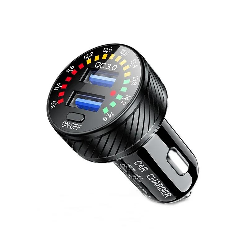 12 24 В автомобильное зарядное устройство с двумя USB-портами QC 3.0, водонепроницаемое, 18 Вт, быстрая зарядка, светодиодный вольтметр, выключатель питания, адаптер для автомобильного зарядного устройства чёрный