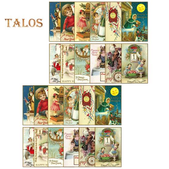 12/24 шт. Поздравительные открытки с Новым годом, ретро-иллюстрации, праздничные открытки с акцентами из золотой фольги для семьи и друзей 2 Sets