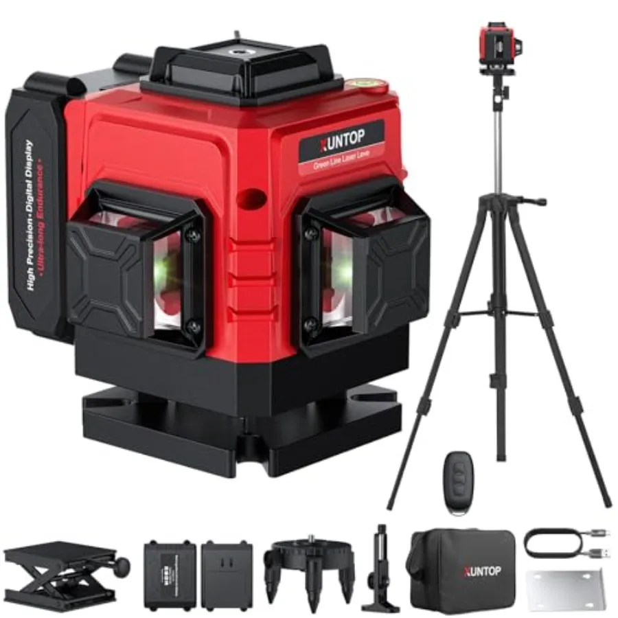 12 Line Laser Level 30M/98Ft Self Leveling Laser Level with Remote Control and Triangle Bracket Green Laser Measuring Tool for