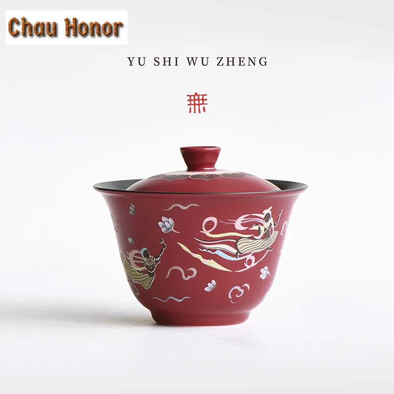 120 мл грубая керамика Dunhuang Apsaras Gaiwan, древняя чайная варенья, чайная чаша с крышкой, комплект, крышка для заваривания чая, чаша для чайной церемонии, подарок
