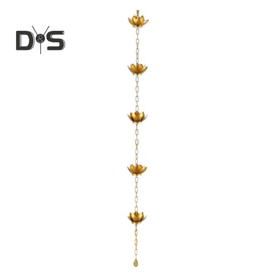 120 см Лотос Дождевая Цепь Прочная Металлическая Садовая Подвесная Чашка для Улавливания Дождя Наружные Желоба Водосточные Трубы Декоративная Замена Дождевой Цепи золотистый