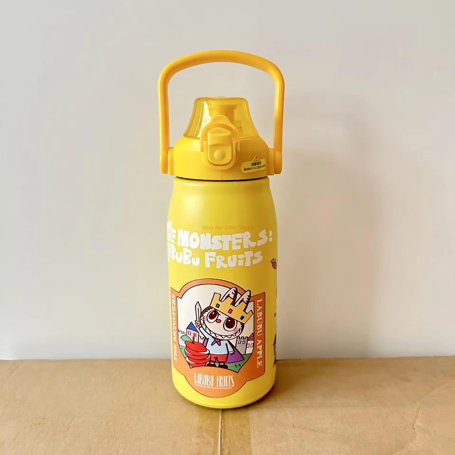 1200 мл Кружка-термос из нержавеющей стали Labubu Большой емкости Спортивная бутылка для воды Новая мультяшная поп-крышка Портативная чашка для воды с соломинкой 1200ML