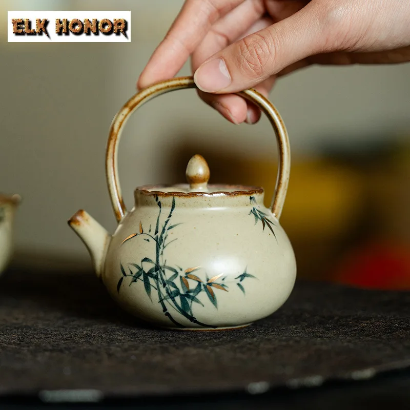 125 мл античный позолоченный зеленый бамбо с подъемной ручкой, чайник, заварочный горшок для чая, чайник с фильтром, украшения для набора чая, подарок