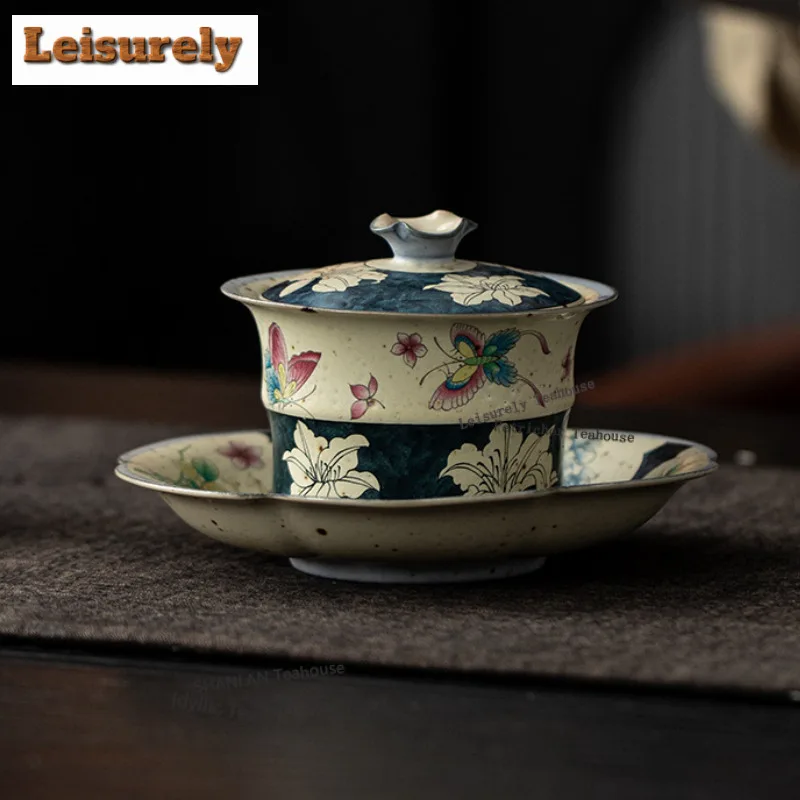 125 мл ручная роспись бабочка лилия карамель глазурь гайвань роскошная чайная варенька чайная чаша с крышкой комплект чайник крышка чаша чайный набор ремесло