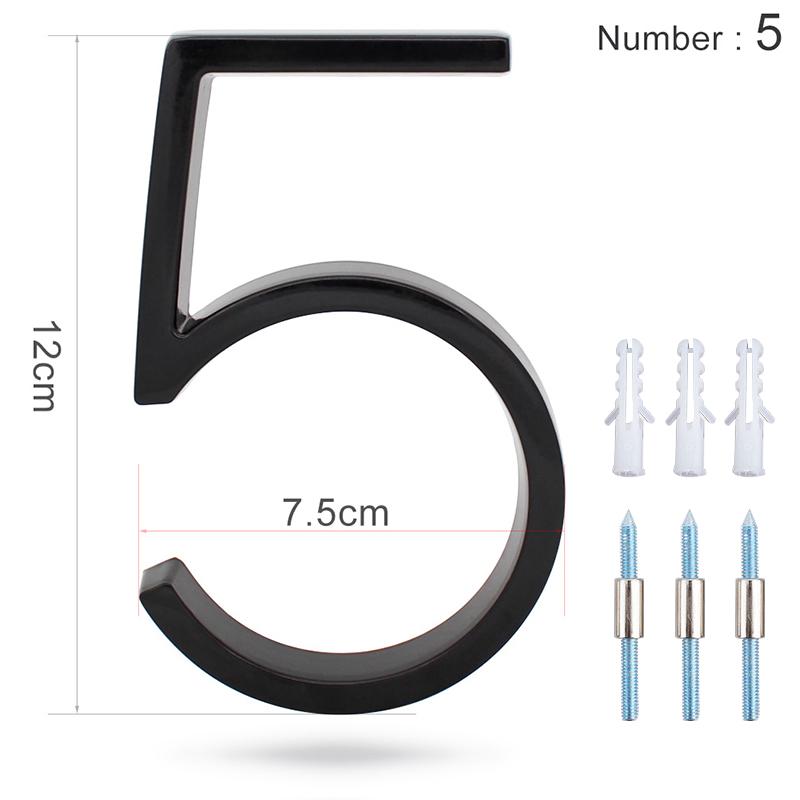 125 мм плавающий номер дома, современные буквы алфавита двери, дома на открытом воздухе 5 дюймов. Черные 3D цифры адрес дверные номерные таблички для стены