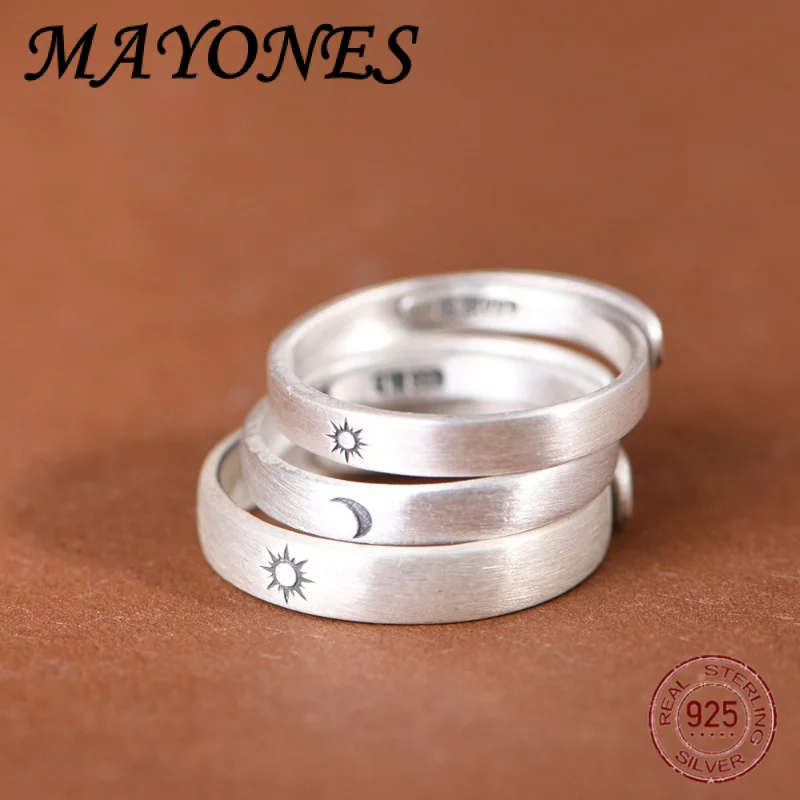 Натуральное кольцо из стерлингового серебра 990, ретро, матовое, польское, с луной и солнцем, для влюбленных, ювелирные изделия