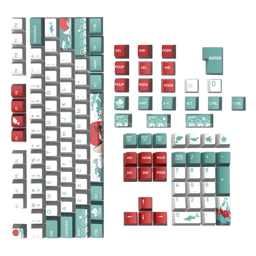 129Pcs Mechanical Keycaps Coral Theme Durable Pbt Replacement Set for Gaming Keyboard Universal Keycap Accessory