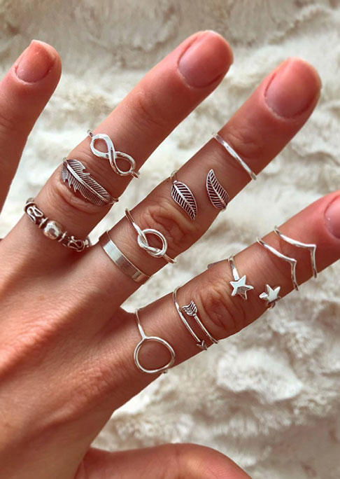 Item #: SCM012641_1 Package : 12 pieces Material : Alloy Occasion : Party Pattern Type : Feather Pattern Type : Leaf Pattern Type : Star Rings Type : Ornament Style : Casual Style : Fashion Style : Retro Occasion : Daily Season : All Season Pattern Type : Arrow Item Weight : 18.00 gram
