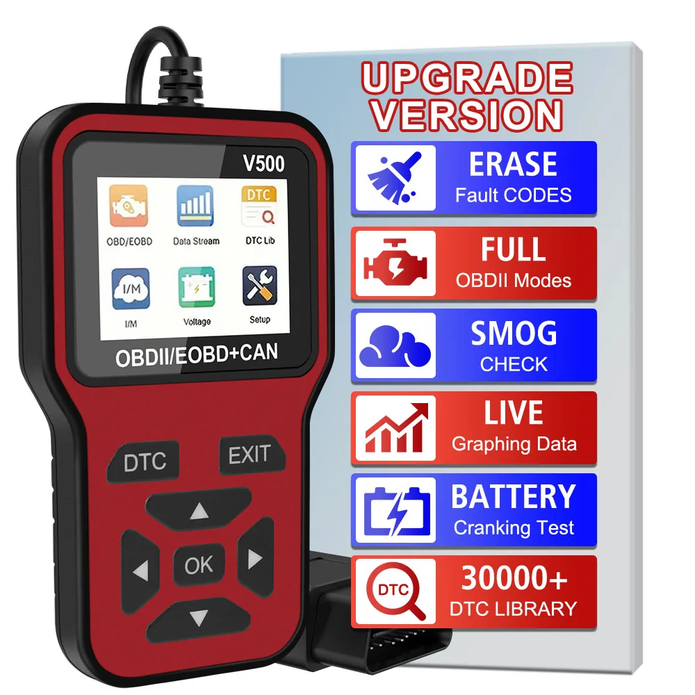 12V OBD2 Code Reader Car Diagnostic Tools OBD II Scanner Check Engine System Tester For Battery O2 Sensor Fault Code Clear V500