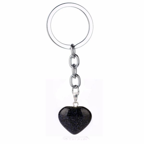 12pcs / lot шарма love heart синий песчаник брелок природный камень кварцевый keyring подарок для женщин мужчины друзья семья брелоки кольца, Slivery;golden